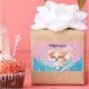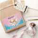 An adorable kawaii papillon dog illustration in pink and blue, featuring a playful papillon pup frolicking in splashes of fun. Personalise with a name.