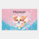 Playful Papillon Pup: Splash of Pink and Blue Rectangular Sticker