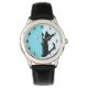 Playful Peeking Kitty Cat - Blue Watch for kids. This adorable timepiece features a playful black cat silhouette peeking out against a delightful blue backdrop. The design is charming and whimsical, perfect for adding a touch of fun to a child's accessory collection.