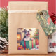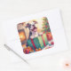 Playful Pitbull Opening Christmas Gifts Holiday Square Sticker