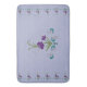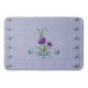 Add a cheerful, fun focal point to your bathroom w/a trendy bathmat featuring stylised fantasy flowers in 3 shades of purple with teal coloured swirls tumbling at its' base. Suitable for many decorating styles, especially Art Deco and Art Nouveau, and looks really cool and happy.