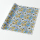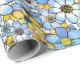 Playful Retro Floral Pattern, Soft Blue and Yellow Wrapping Paper