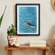 This charming wildlife illustration features a playful river otter swimming through flowing blue water, surrounded by textured wave patterns that create a calming and dynamic ocean-like movement. The artwork captures the beauty of aquatic wildlife, river animals, and peaceful nature scenes, making it a perfect choice for lovers of animal illustration, marine life art, and nature inspired decor.