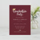 Playful white script with golden graduation cap accent, graduation party invitation. Features, dark burgundy red colour background and single photo on back.