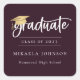 Playful white script with golden graduation cap accent, stickers. Features, dark purple colour background. Template text lines for graduation year, graduate's name and school.