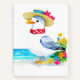 Brighten your day with this playful coastal seagull illustration, featuring a cheerful seagull wearing a sun hat adorned with flowers and a red striped scarf. The vivid colours, ocean backdrop, and whimsical details give it a lighthearted seaside charm that’s both fun and eye-catching.