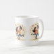 This vibrant cartoon-style design captures a couple in joyous play, with one character spinning the other in a cheerful lift. Their exaggerated features and whimsical backdrop of floating hearts and stars create a delightful scene perfect for mugs. This is an AI generated image.