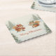 Bring festive joy to your holiday table with these adorable watercolor Christmas coasters featuring two playful squirrels in cozy knitted hats and scarves surrounded by snowy Christmas trees and the text Merry Christmas that you can personalize. The whimsical boho watercolor style adds cozy winter charm and joyful holiday spirit to every drink and celebration. Perfect for families, kids, and festive gatherings. Part of a collection with matching cards, wrapping paper, party supplies, gifts, and decor.
