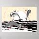 Playful Stylized Ocean Jumping Dolphins At Sunrise Poster