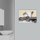 The Playful Stylized Ocean Jumping Dolphins At Sunrise poster print is part of the bathroom wall decor collection.
