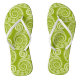 A playful summer-green fern leaves pattern decorates the flip flops. In New Zealand, the name for fern frond is koru and holds the symbolic meaning for new beginnings. The beauty, this elegant swirly pattern allows colour-customisation by modifying the fill colour. Like this, match any favourite colour. For colour and design customisation, contact https://t.me/KBMD3signs_chat.