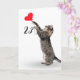 Grey tabby cat with red heart balloon for 23rd birthday on white background.