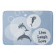 Three playful wave jumping dolphins in steel-blue decorate the bath mat. Customise it by modifying the bathroom mat colour. Mid-range hues work best. Additionally, personalise the text. Like this, it is easy to accommodate your bathroom decor colour or create a personalised birthday gift for your kid. For custom designs or help with the customisation, contact https://t.me/KBMD3signs_chat.