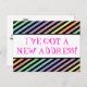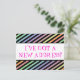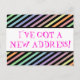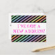 This whimsical, fun change-of-address postcard design features the message "I’VE GOT A NEW ADDRESS!" on the front, and a customisable message on the back. Postcards like this could be used to inform friends and relatives that the sender has moved to a new house or apartment.