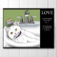 Add a splash of humor to your day with this playful illustration featuring a relaxed white cat lounging in a bathroom sink beside a tempting faucet and soap dish. Paired with a witty phrase about love and self-control, this charming and lighthearted design is perfect for cat lovers, pet owners, and anyone who appreciates funny cat art.