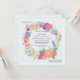 A sweet wreath, of hand-drawn flowers against a light blue background, is a beautiful invitation for a happy celebration.