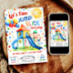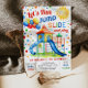 Get ready to celebrate with our playground birthday invitation! This delightful invitation captures the joy and excitement of a day at the playground, perfect for your child's next birthday bash or any fun-filled outdoor event. The design features a vibrant playground scene with slides, climbing equipment, and swings, inviting kids to run, jump, slide, and play! Bright and bold primary colours dominate the invitation, creating a cheerful and lively atmosphere. Festive balloons float in the air alongside a radiant sun, adding an extra touch of celebration and warmth. Whether you're planning a birthday party, picnic, or any outdoor gathering, our park invitation sets the perfect tone for an unforgettable day of fun and laughter. Order now and let the adventure begin!