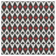 Modern geometric harlequin pattern features all four suits of a deck of playing cards (clubs, diamonds, hearts, spades)