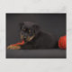 rottweiler 1,5 months old puppy is playing with red yarn ball