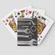 Playing cards with photograph of mechanic's tools (nut wrenches, nuts, and bolts) on top of a reflective carbon fibre surface