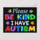 The messages of “Please Be Kind I Have AUTISM” to show autistic pride and raise awareness of autistic spectrum disorders and encourage kindness towards them.