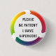Grab their attention with this colourful badge. Get your message across that you or a loved one has aspergers. Text is customisable. Available in different sizes.