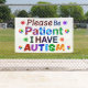 The message of “Please Be Patient I Have AUTISM” to understand and respect people with Autism and encourage kindness towards them.