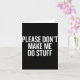 Please Don’t Make Me Do Stuff Lazy Teen Sarcasm Fu Card