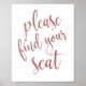 Please Find Your Seat Rose Gold Glitter 8x10 Sign