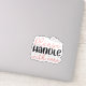 The decal is perfect...it arrived ahead of schedule, was well priced and functions as a nice give away for our customers. It adheres well too. Chandler. Great job...the printing is very clear...