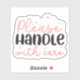 Add a thoughtful touch to your packaging with this elegant “Please Handle With Care” sticker. Featuring graceful pink script, bold black lettering, and sweet heart details, it’s a gentle reminder to treat your creations with kindness. Ideal for handmade goods, boutique brands, and small businesses that value presentation, protection, and emotional connection.