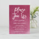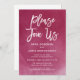 This is a typography brush hand lettering wedding invitation featuring please join us text with ombre watercolor background