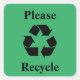 Please Recycle with Recycling Symbol on Green Square Sticker