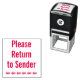 This simple rubber stamp design features the message "Please Return to Sender", along with a decorative arrow shape. It could be used to indicate that received postal mail has been delivered to the wrong address or that the recipient is unknown, and should be returned to the sender.