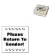 This rubber stamp design features the message "Please Return To Sender!", along with a decorative curved arrow shape. It could be used to indicate that received postal mail has been delivered to the wrong address or to an unknown recipient, and should be returned to the sender.