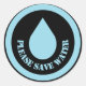 Please save water. Water conservation sticker with picture of water drop.