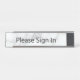 Please sign in is on a faux white marble desk name plate. The text is black. You can edit the text to show a custom message if desired.