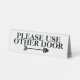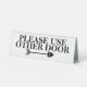 Ideal for any business business or shop. A white background has a bold black font on it that says "Please use other door" with the silhouette of an arrow pointing in the direction to go. Personalise the wording to any of your choice and feel free to add a background colour and to change the colour, style and size of the font to suit your business requirements.