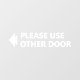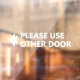 Looking to keep guests from coming in through the wrong door? This "Please Use Other Door" window cling with a left arrow is perfect for you! Place it on the window or the door of your choice, and watch as guests start using the correct door in no time.