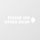 Looking to keep guests from coming in through the wrong door? This "Please Use Other Door" window cling with a right arrow is perfect for you! Place it on the window or the door of your choice, and watch as guests start using the correct door in no time.