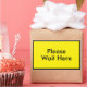 Message Pease Wait Here. Customise the colour and text. Post at your establishment to inform individuals to wait in a specified areas