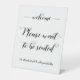 Welcome please wait to be seated black calligraphy sign. Signage by Tuxedo Royale