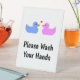 Please Wash Your Hands Blue Pink Love duck Pedestal Sign