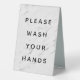 Modern and sophisticated polite sign instructs guests and customers to please wash your hands. Great in the interest of hygiene, safety and cleanliness this sign is ideal for hotels, stores, restaurants, offices or anywhere needed.