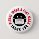 Please wear a face mask cover required pinback button. Add your own Covid19 health warning, slogan, crisis message, sign, logo, infographic etc. Inform the public about face coverings, quarantine, social distancing, clean hygiene, washing hands 20 seconds, coughing etc. Change quantity to get the cheap bulk price. Transfer this design to any other product on Zazzle. Make your own custom badge against corona virus. Head with facemask illustration. Upload your own logo optionally.