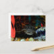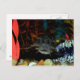 This postcard features the front view of a Pleco. The surround area around this Pleco is the gravel and plants of the aquarium.