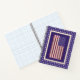 This patriotic design features the United States flag in vintage colours with the entire pledge of allegiance along the red stripes. The flag is surrounded by a border of blue and off-white with a background of white stars. The back side of the notebook is blue with white stars.