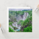 Oil painting of big waterfalls in Plitvice lakes national park, Croatia. Cascade of two big waterfalls in summer. Mountain forest waterfall landscape.