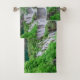Oil painting of big waterfalls in Plitvice lakes national park, Croatia. Cascade of two big waterfalls in summer. Mountain forest waterfall landscape.