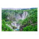 Oil painting of big waterfalls in Plitvice lakes national park, Croatia. Cascade of two big waterfalls in summer. Mountain forest waterfall landscape.